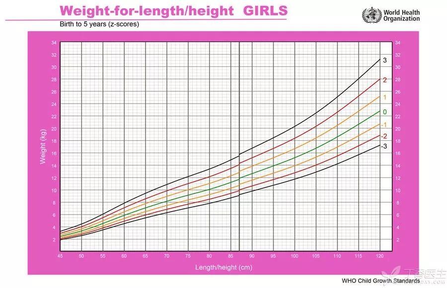 WHO 0~5 岁女孩的身高/身长-体重曲线