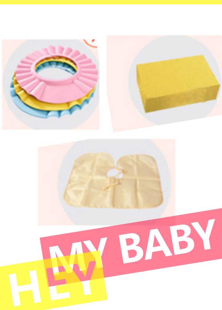 围布一块、扫发海绵一块、纸巾几张或塑料布一块、婴儿专用浴帽一个、宝宝专用洗发水